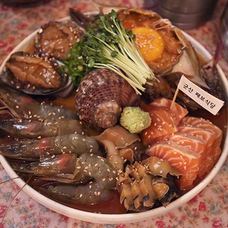 두번째 군산맛집은 신선한 해산물로 만든 장(새우장, 게장등)과 일본 가정식을 벤치마킹한 인테리어 그리고 감바스, 꼬막비빔면등 이국적인음식, 향토적인 음식 모두 맛볼수 있는 식당입니다. 앞에서 본 한일옥 같은 경우에는 한 두가지의 메뉴에 집중적으로 투자해서 성공한 케이스이고 째보식당은 한일옥과는 다른 케이스로 성공한 식당입니다. 3-4명정도 들어가서 다양한 메뉴를 한번씩 먹어볼수 있는 곳으로 친구들이나 연인들과 방문하기에 좋은 곳입니다. 근방에 사실 양식전문점이 전무하여서 연인과 같이 여행갔을때 이 째보식당을 방문하시는 것을 추천합니다.